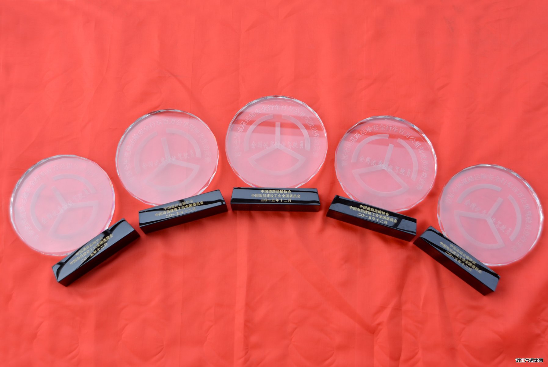湛汽集团16名驾驶员连续安全行驶200万公里,获得“全国优秀驾驶员”荣誉称号,图为部分奖牌。